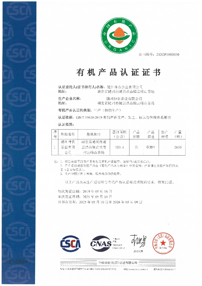 國(guó)標(biāo)有機(jī)認(rèn)證證書